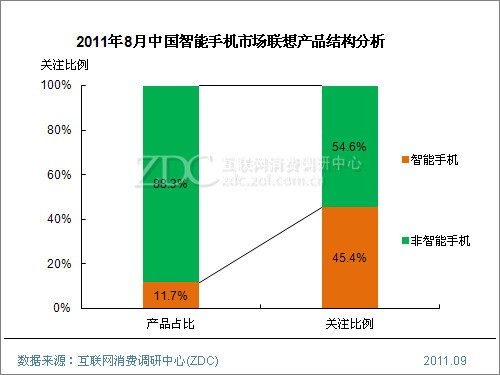 (圖)2011年8月中國智能手機(jī)市場聯(lián)想產(chǎn)品結(jié)構(gòu)分析