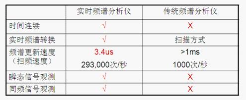 圖3: 實時頻譜分析儀和傳統(tǒng)頻譜分析儀的區(qū)別。
