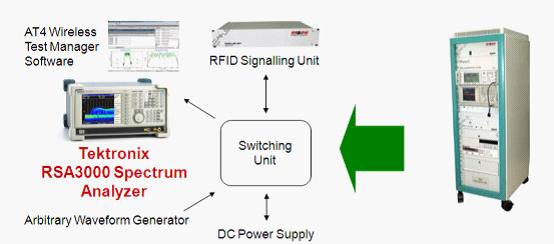 圖6:基于泰克實時信號分析儀的RFID認證測試系統(tǒng)。