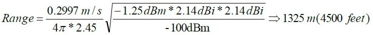 例如,如果使用弗里斯方程式計算一個2.45GHz 無線鏈路的最大通信距離,其發(fā)射功率為-1.25dBm,接收靈敏度為-100dBm 以及兩個天線增的益都是2.14dBi。需要注意的是,2.14dBi 是偶極天線的理論增益,而考慮損耗時一般達不到這一值。