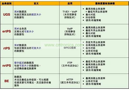 WiMAX標準包括許多值得關注的特性,其中之一就是能夠實現很高的服務質量和支持信道資源調度。對于服務提供商而言,這些特性尤為重要,因為這些特性能夠最大限度地提高無線信道利用率和系統吞吐量,并且能夠確保達到服務級別協議(SLA)中規定的要求(如圖3所示)。