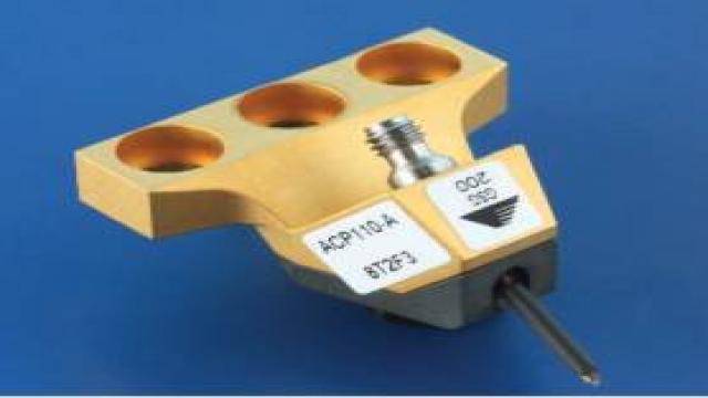 同時(shí)期,Cascade公司在1994年的第43屆春季ARFTG會(huì)議上展示了新型的40-GHz空氣-共面探針(ACP)(圖5)。幾年之內(nèi),ACP探針迅速達(dá)到了110GHz(1-mm連接器模型)和140GHz(基于波導(dǎo)模型),代替了WPH生產(chǎn)線。到目前為止,由于ACP的柔軟及無(wú)損式接觸,許多工程師喜歡將ACP用于探測(cè)金壓點(diǎn)。