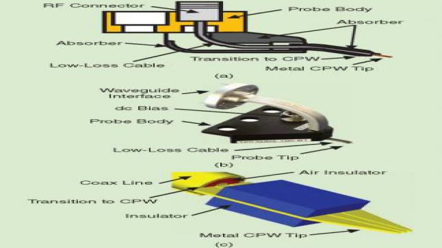 現(xiàn)代對(duì)于射頻圓晶探針的設(shè)計(jì)將測(cè)試信號(hào)從一個(gè)三維媒質(zhì)(同軸電纜或矩形波導(dǎo))轉(zhuǎn)換到兩維(共面)探針的接觸上。這種操作需要對(duì)傳輸媒質(zhì)的特性阻抗Z0進(jìn)行仔細(xì)的處理,并且要在不同傳播模式之間進(jìn)行電磁能量的正確轉(zhuǎn)換。雖然晶片探針的輸入是一個(gè)標(biāo)準(zhǔn)化同軸或波導(dǎo)界面,但它的輸出(探針極尖)則可以實(shí)現(xiàn)不同的設(shè)計(jì)概念。這些界面,特別是探針極尖,會(huì)將不連續(xù)性帶入到測(cè)量信號(hào)路徑中。這種不連續(xù)性本身會(huì)產(chǎn)生高階傳播模。因此,圓晶探針和DUT激勵(lì)必須只能支持單個(gè)準(zhǔn)-TEM傳播模式并且要排除高階模或者對(duì)高階模展現(xiàn)出更高的阻抗。