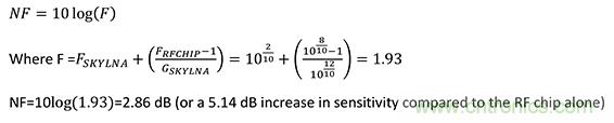 以一個包含 Nordic Semiconductor nRF52832 和 SKY66113-11 的系統為例。按照規格,在鏈路預算為 100 dB 時,該射頻芯片的最大靈敏度為 -96 dB,最大輸出功率為 4 dB。Nordic 的規格書中不包含 NF 數據,但此類芯片的典型值約為 8 dB。
