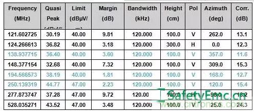 圖1:整機輻射發射測試數據
