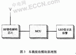 該系統(tǒng)的基本工作原理如下,把輪胎模塊裝置在輪胎內(nèi),壓力和溫度傳感器檢測輪胎內(nèi)部當前的應(yīng)力和溫度信息,獲得的模擬信號經(jīng)過A/D變換器轉(zhuǎn)換成數(shù)字信號,然后通過射頻發(fā)射器發(fā)送出去。車載接收模塊裝置在駕駛室內(nèi),射頻接收器接收來自輪胎模塊的應(yīng)力和溫度信息,當輪胎壓力過高或者過低時,通過顯示和報警裝置發(fā)出報警信息。