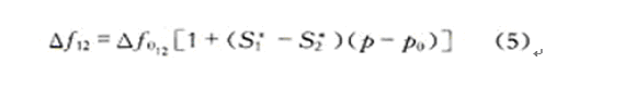 當傳感器表面有壓力作用時,無線SAW壓力傳感器的壓電薄膜就會產(chǎn)生形變,薄膜材料的應變會使得聲表面波傳播速度發(fā)生變化,從而使聲表面波的中心諧振頻率發(fā)生變化。通過無線檢測SAW壓力傳感器的中心諧振頻率變化,就能得到壓力變化的數(shù)據(jù)。假設溫度對兩個單端諧振器的中心諧振頻率影響很小,則兩諧振器中心頻率差的變化與所測壓力之間的關系式可表示為