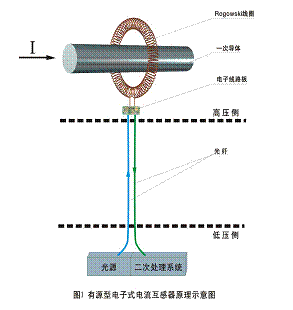 有源型電子式電流互感器特點是一次傳感器為空心線圈,高壓側電子器件需要由電源|穩壓器供電方能工作。其原理如下圖所示: