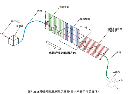 無源磁光玻璃型電子式電流互感器特點是一次傳感器為磁光玻璃,無需電源供電。其原理如下圖所示: