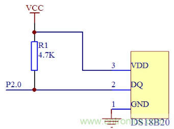 設計中采用支持“一線總線”接口、抗干擾性強、外部電路簡單、精確度高的DS18B20溫度傳感器對溫度的實時測量。其中,DS18B20 管腳2 即DQ 接在MSP430F149 的P2.0管腳,如圖所示。