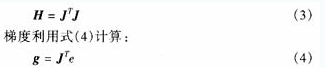 式中,J為Jacobian矩陣,包括網絡誤差項相對于權重和閾值的一階微分 ,e為網絡的誤差項。Jacobian矩陣可以利用標準的BP算法得出,這比直 接計算Hessian矩陣簡單得多。迭代式為: