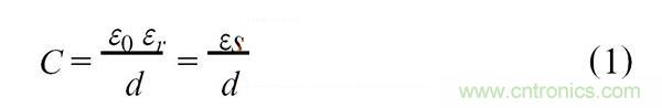 式中,S為極板相互遮蓋面積,單位為m2;d為兩平行板間的距離,單位為m;ε為極板間介質的介電常數;εr極板間介質的相對介電常數;ε0真空的介電常數。從上式可以看出,當d小時可使電容量增大,而使靈敏度增加,但d過小容易引起電容器擊穿,一般我們可以采取在極板間放置云母來改善,此時電容C為兩電容串聯,可寫成: