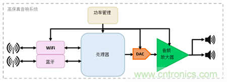處理器執行各種音頻處理功能,如解碼和信號均衡,同時也處理Wi-Fi和/或藍牙通信軟件堆棧。過去,CD品質的采樣頻率可能已足夠。但是今天的高保真音頻系統對信號鏈中的處理器提出了其它要求,因為高保真音質要求在24位音樂信號流中提供48kHz至192kHz范圍內的采樣率。