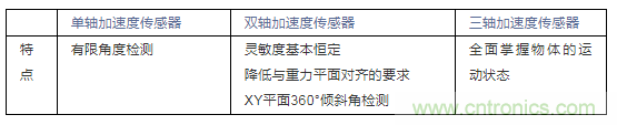 該使用哪種加速度傳感器,應(yīng)根據(jù)具體的應(yīng)用要求而定,比如檢測(cè)傾斜角范圍、檢測(cè)對(duì)象在XYZ三軸運(yùn)動(dòng)上是否有限定、檢測(cè)精度要求等等。