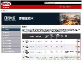圖3:ADI加速度傳感器選擇與開發(fā)板選擇頁(yè)面